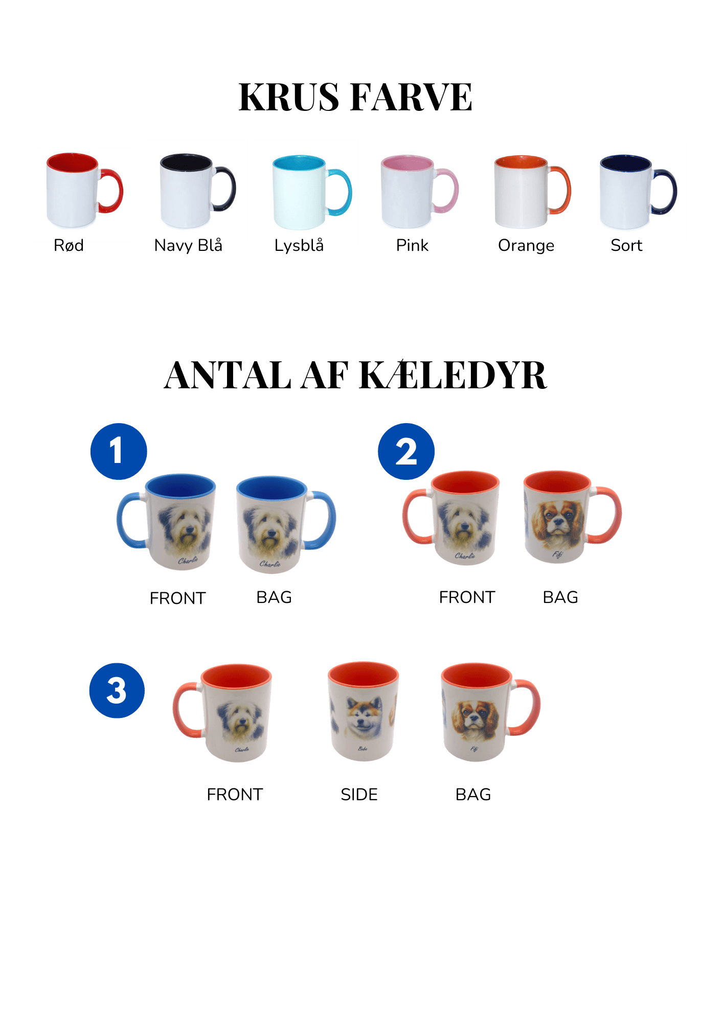 Skab dit eget personlige krus med billede af dit kæledyr. Upload et foto af din hund, kat eller andet kæledyr, tilføj navn og vælg skrifttype – så designer vi dit unikke krus i høj kvalitet. Perfekt som gave eller til dig selv.